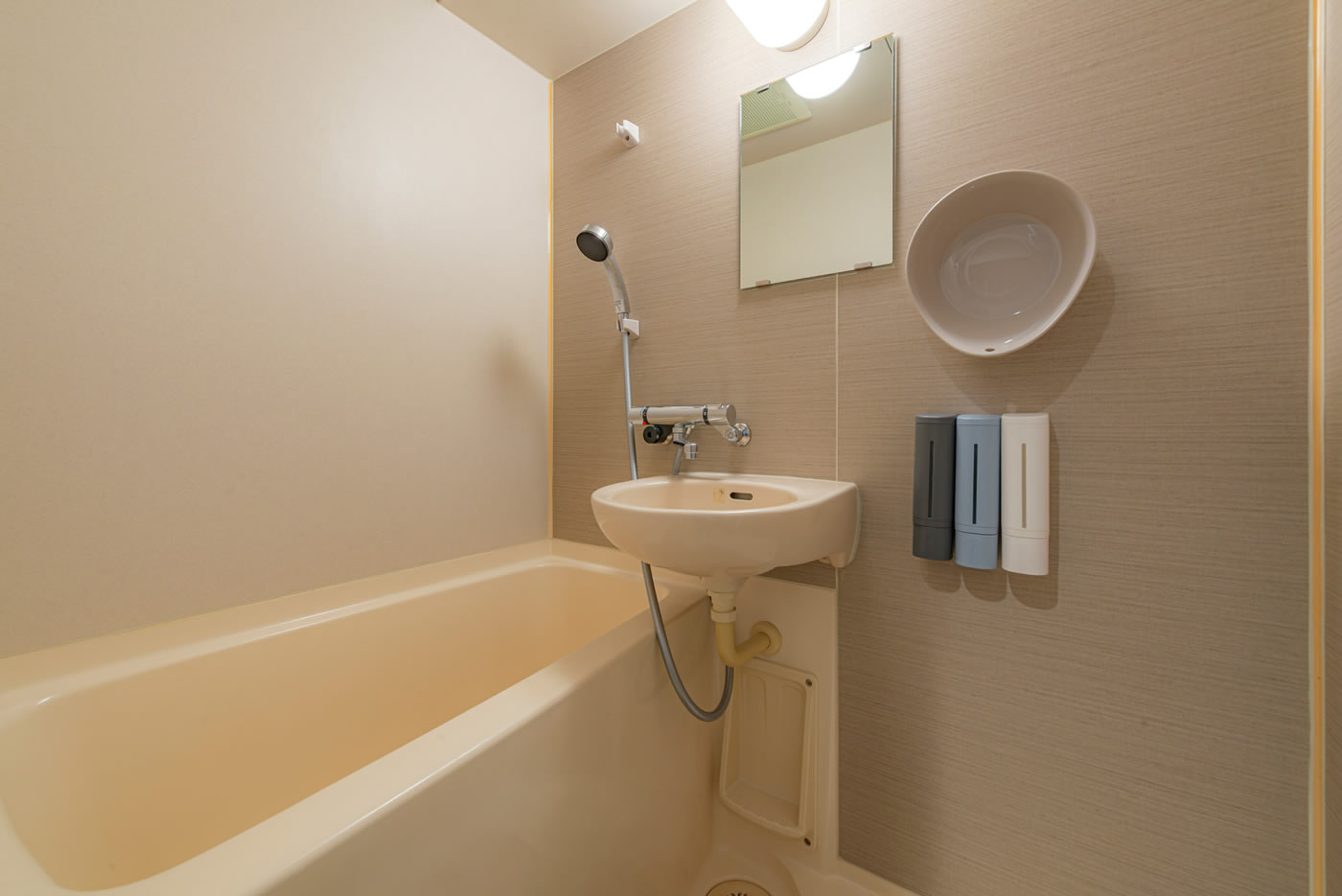 バス、洗浄機付トイレ、テーブル、ドライヤー、ハンディ掃除機、電気ケトル、炊飯器、ミニ冷蔵庫、電子レンジ、基本的な調理器具、食器、コンロ、ゴミ箱、卓上鏡、ハンガー、空気清浄機、エアコン、テレビ、洗濯機、タオル、バスタオル、シャンプー、リンス、ボディーソープ、ハミガキセット、カミソリ、ブラシ、簡易スリッパ ※部屋着はご用意しておりません。 ※洗濯機に乾燥機能はついておりません。 ※調味料や油などは置いておりません。
